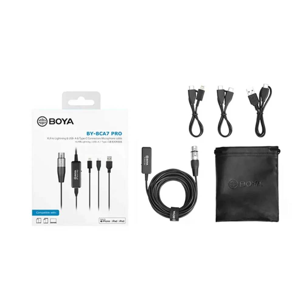 Boya BY-BCA7 PRO Cable Con Preamplificador XLR a Usb / Usb C / Lightning