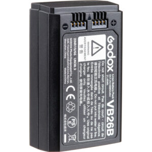 Mantén tu cabezal de flash V1 siempre encendido con esta batería VB26B de Godox. Con un voltaje de 7,2 V, esta batería recargable de iones de litio es la versión mejorada de la VB26, con una mayor capacidad de 2980 mAh. Cuando está completamente cargada, puede generar 480 destellos a máxima potencia.