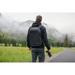 La mochila para cámara y portátil ProTactic BP 350 AW II de Lowepro es espaciosa, resistente y ligera. Tiene capacidad para dos cámaras réflex digitales (DSLR), incluyendo una con un objetivo de 70-200 mm. La BP 350 también tiene espacio para hasta ocho objetivos. Esta nueva generación de mochilas para cámara ProTactic BP cuenta con un interior más ajustable, múltiples puntos de acceso con accesorios personalizables y un cinturón convertible. El bolsillo CradleFit suspende y protege tu portátil de 13″ dentro de la mochila. Dos correas de cierre rápido y un soporte para trípode SlipLock te permiten montar un trípode o monópode en el exterior. El sistema SlipLock de presillas y pestañas facilita añadir bolsas y estuches a tu mochila, para que puedas llevar más cosas. Una funda impermeable incluida protege tu mochila de la lluvia.