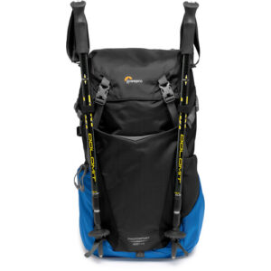 El diseño exterior incluye múltiples compartimentos funcionales: bolsillo superior acolchado, compartimento interno para objetos valiosos, correas de compresión exteriores, sujeción para bastones, y espacio para botella de agua o trípode de viaje. También admite vejiga de hidratación de hasta 3L, ideal para aventuras prolongadas.