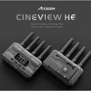 El sistema de transmisión de video inalámbrico multiespectro CineView HE de Accsoon permite enviar una señal de cámara 1080p60 al receptor incluido y a hasta tres dispositivos móviles. Este versátil sistema de transmisión de video inalámbrico ofrece una forma económica de que cuatro personas en el set monitoricen una señal de cámara HDMI. El transmisor puede enviar la señal a un total de cuatro dispositivos simultáneamente a distancias de hasta 365 metros con un retardo de tan solo 60 ms. Puede transmitir a cualquier combinación de hasta cuatro receptores y smartphones y tablets iOS/Android mediante señales inalámbricas de doble banda.