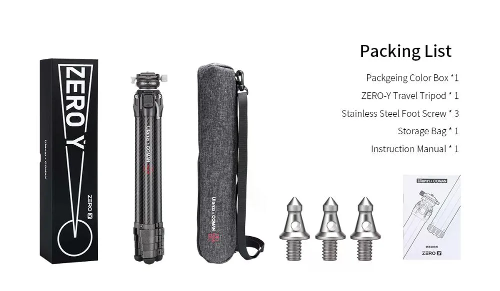 Ulanzi & Coman Zero Y Trípode de Fibra de Carbono Todo Terreno quantity