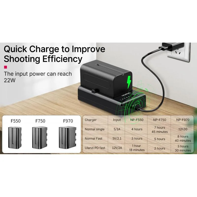 Ulanzi NP-F01 Interfaz Multifuncional y Cargador de Baterías Serie NP-F cantidad