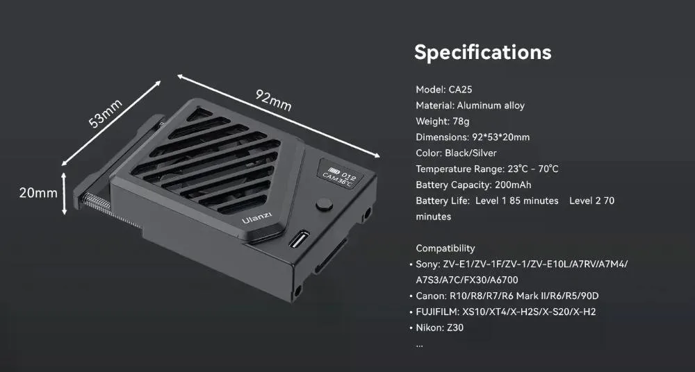 Ulanzi Ventilador de Cámaras CA25: Refrigeración Avanzada para tu Cámara