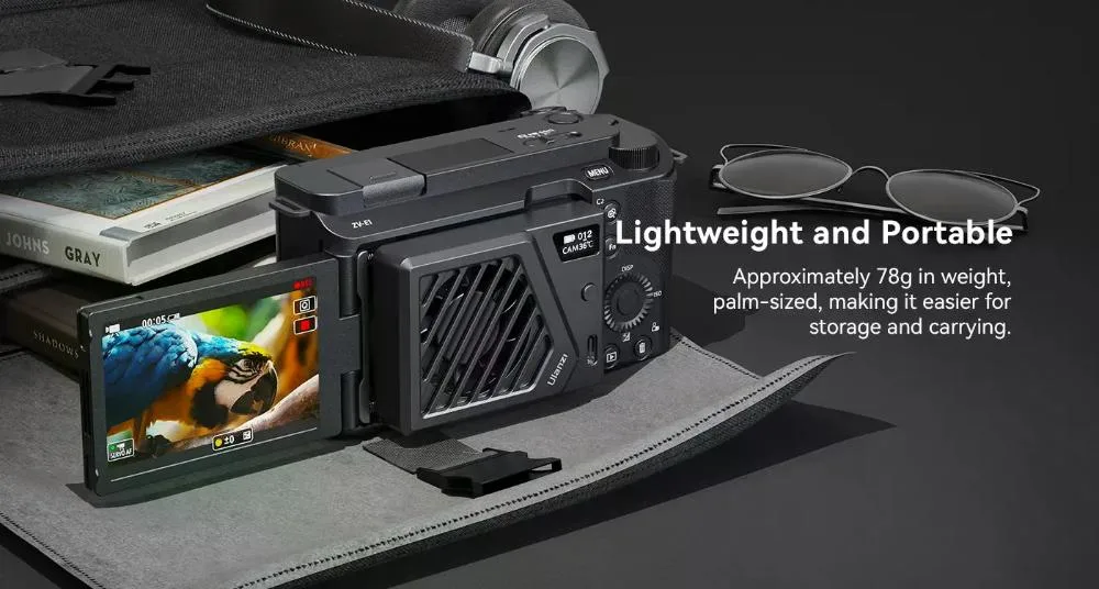 Fabricado con aleación de aluminio de alta calidad, el Ulanzi CA25 no solo garantiza una disipación de calor eficiente sino también una durabilidad excepcional. Su acabado arenado le confiere una estética premium y resistente. Con un peso de tan solo 78g y un tamaño que cabe en la palma de la mano, este ventilador de cámara es extraordinariamente ligero y portátil, facilitando su transporte y almacenamiento en cualquier bolso de equipo.